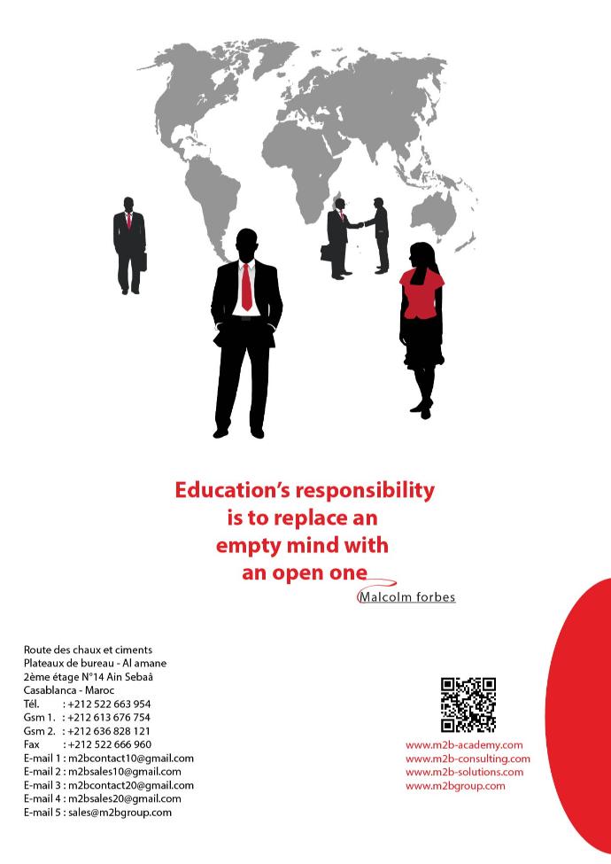 En plus de formations inter-entreprises, M2B ACADEMY organise régulièrement des formations « sur mesure » adaptées aux besoins spécifiques d’une entreprise, à sa culture, à son personnel, à ses objectifs et à son environnement socio-économique tant au niveau de l’approche, que du contenu, de l’horaire et du lieu.